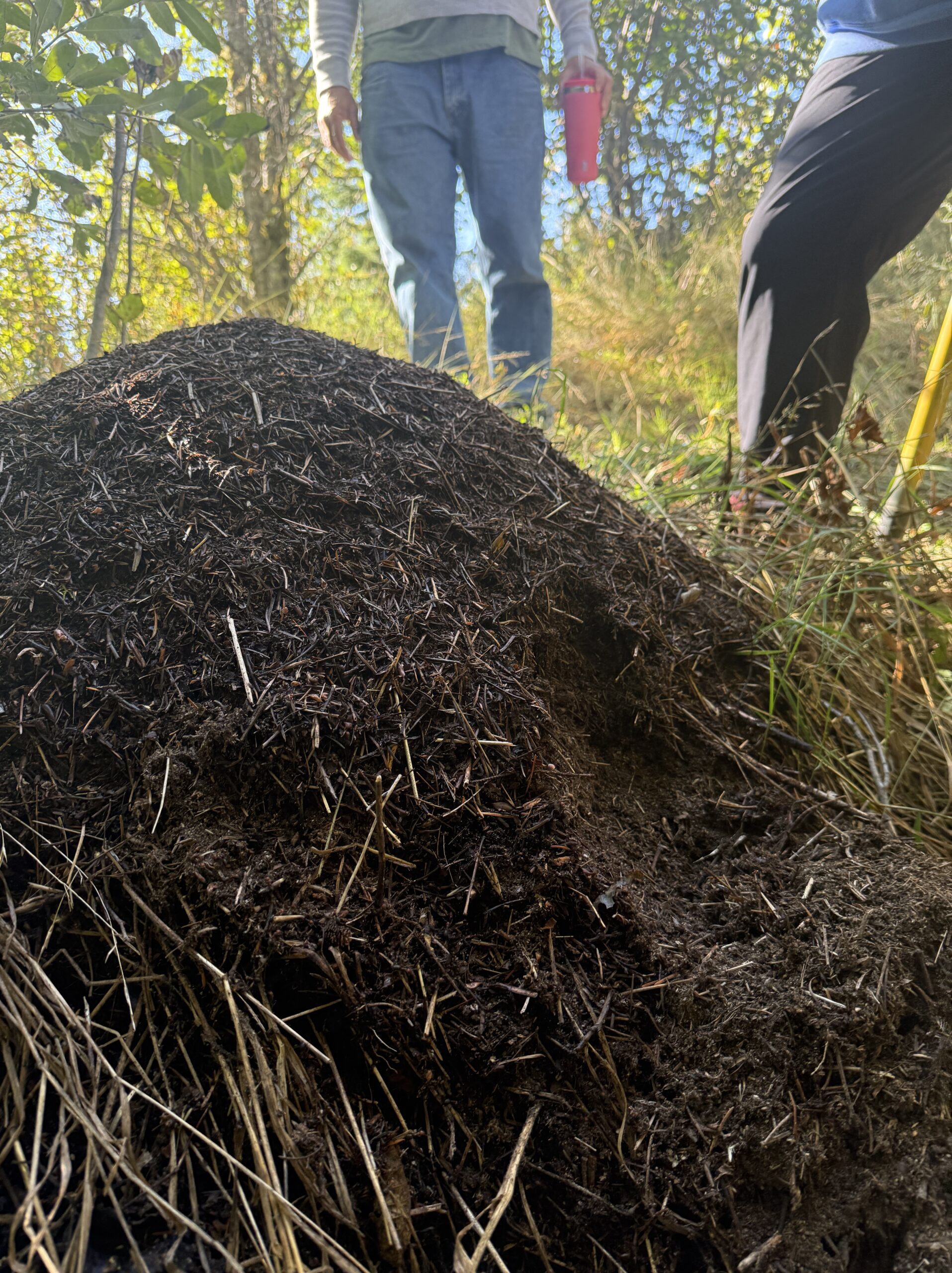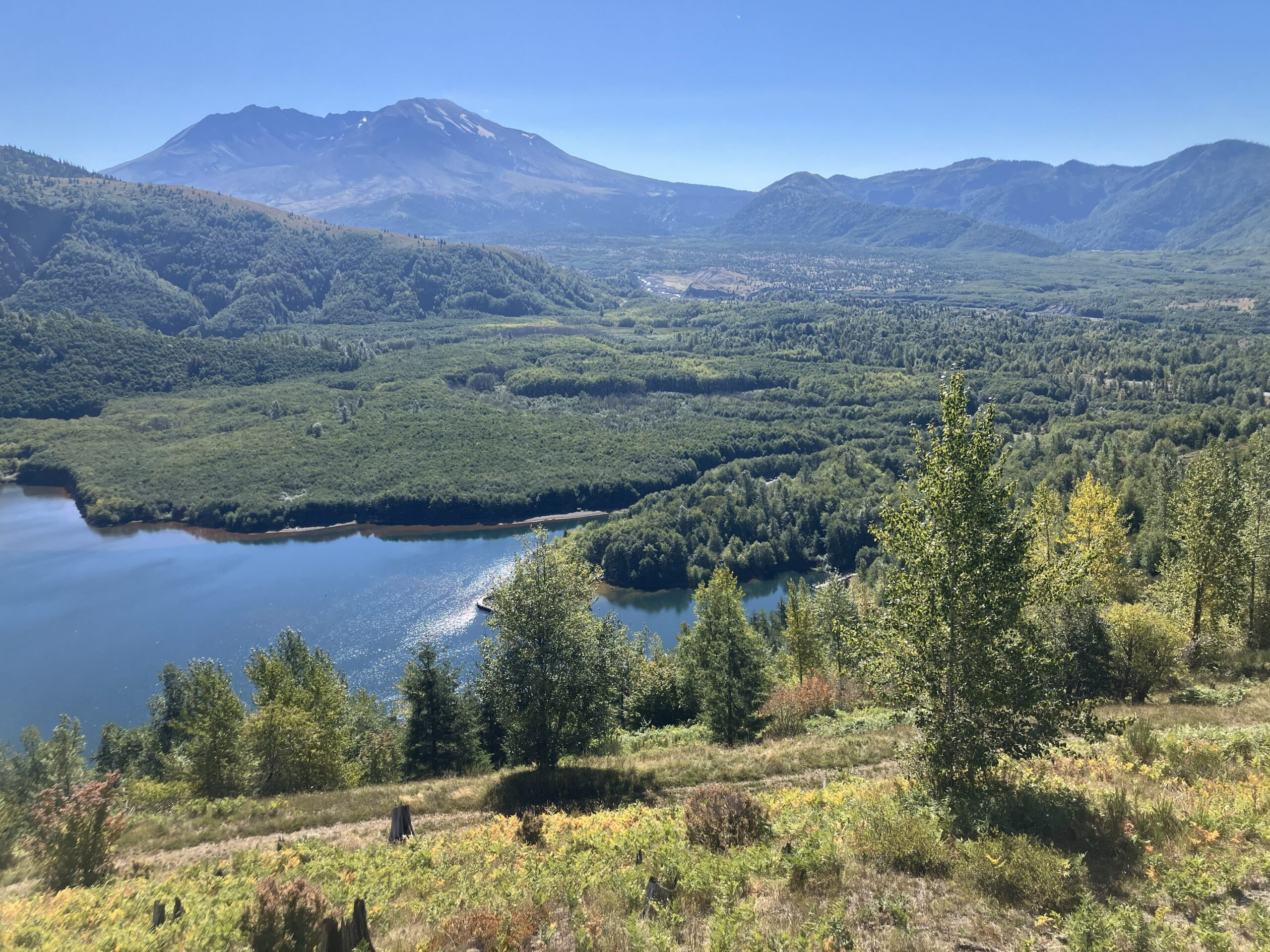Following Bill’s advice, we started our exploration by going into the MSH National Park (NP) from the west side. We stopped at the Weyerhaeuser Visitors Center, made some videos then headed out to the Hummocks trail near the southwest side of Coldwater Lake, due west of MSH. Along the way we drove through mature forest that were planted by Weyerhaeuser at different stages (signs indicating the date of planting) and many areas already being harvested. Along the Hummocks Trail we made several videos about the rapid regeneration of the forest by Craig Hawkins (BS and MS degrees in forestry and worked as the Australian National Forest Service for decades). I made videos about the significance of bioturbation using the massive ant mounds and extensive root systems of felled trees that we observed along the trail. Joe made videos of the significance of the tree stumps left from the initial blast.