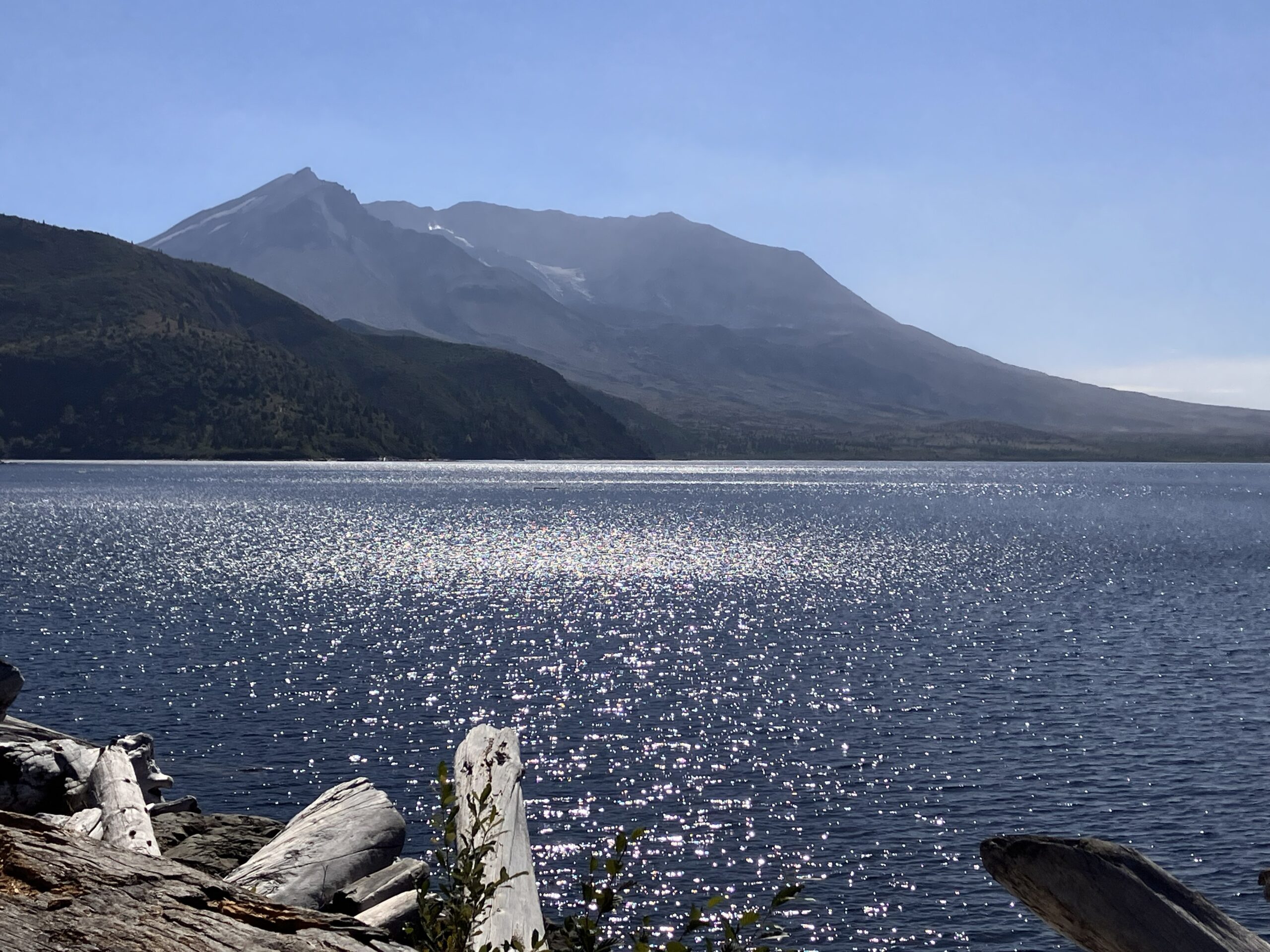 The second day we entered the MSH National Park from the south, traveling through National Forest. We explored the Muddy River which is a 30 mile long stream on the southeast side of Mount St. Helens. During the eruption, lahars swept through the river leaving volcanic rocks and sediment that are still there today. We hiked up the river and trails in the area. While today the river and its tributaries have clear mountain waters, that was not the case during the eruption as it too, like the Toutle River, was filled with logs and cement like sediment.