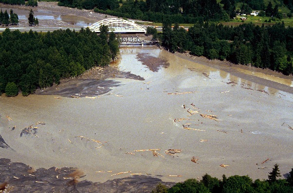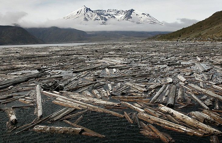 I especially remember watching on TV the cement-like slurry of ash mixed with melted glacier waters roar down the Toutle River destroying everything in its path. It flowed upwards of 90 mph taking out homes, bridges, vehicles, and trees. Upon reaching the confluence with the Columbia River 60 miles downstream, the 3 billion cubic yards of sediment from the Toutle River lahar, caused a debris dam that backed up the Columbia River. It left the river valley filled with deep deposits of ash and the surrounding area buried in gray, lifeless, acidic ash.