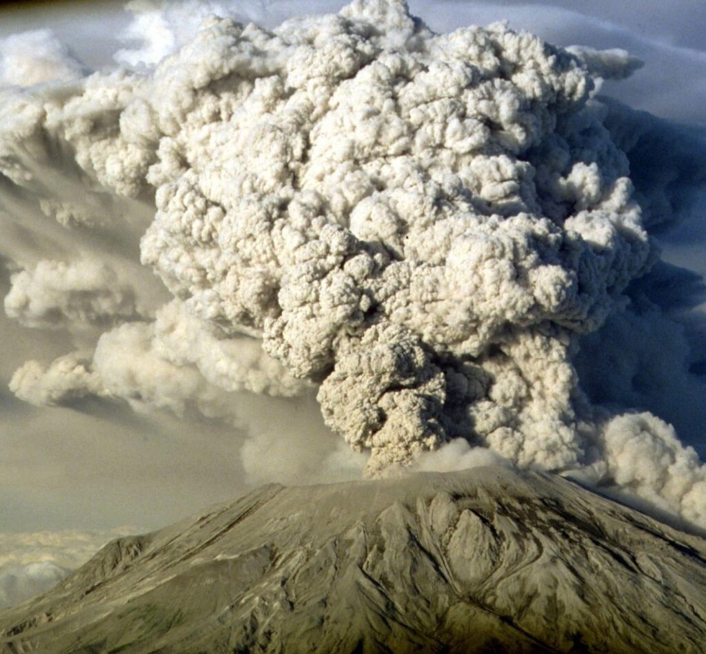 MSH erupted early Sunday morning, May 18, 1980 following a 5.1 Richter earthquake. I remember being glued to the TV watching the north side of the mountain seeming to slowly collapse. The massive rock debris mixed with ice from the mountain collapse slammed into Spirit Lake and spilled into the Toutle River. Then almost instantly, rock and ash exploded into the sky creating what looked like an atomic eruption of ash into the sky. The explosion created a 12-15 mile diameter (150 square mile) blast zone through the surrounding forest. The mushroom-shaped column of ash shot 80,000 feet into the sky and drifted downwind. The ash plume turned day into night and gray, acidic ash covered eastern Washington and several states beyond.