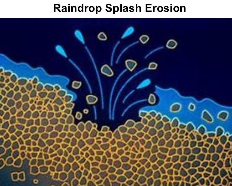 Rainfall will produce erosion and you get not only degradation of the land but degradation of surface water quality as sediment and sediment-bound nutrients are transported downslope.