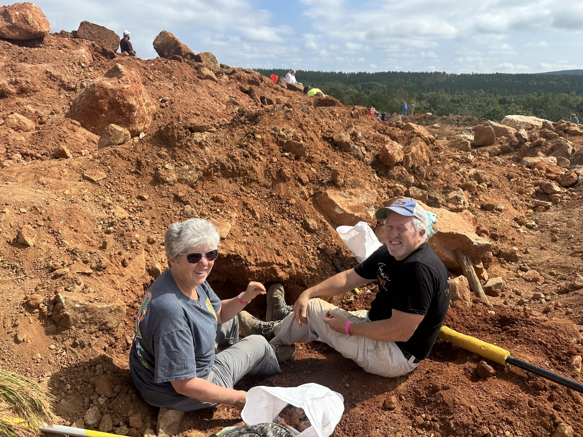 We set out in our RV for a week camping with Marcia Lee and Tyler and Michele Cmpbell who are supporters of CSM. We spent most of our time scouting for fossils and gems. The fossil hunting was not successful. We sieved sediment in several creeks and the only thing we found was a water moccasin which slithered off the bank in front of me and into the water at the very spot I wanted to sieve. Having spent a lot of my life in LA swamps I know the difference between a water snake and a moccasin but I was hoping Ruby didn’t. Unfortunately I couldn’t fool her so she stayed up on the bridge and watched my back for me. We did find a good place to dig gems and had a good time digging with our friends.